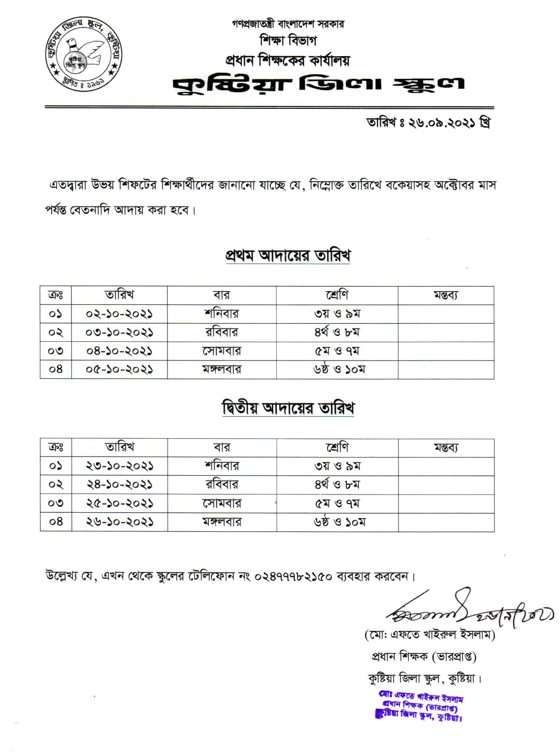 01.Jan.2025 Regarding the payment of salaries for the month of September 2024 (including previous arrears). View Download